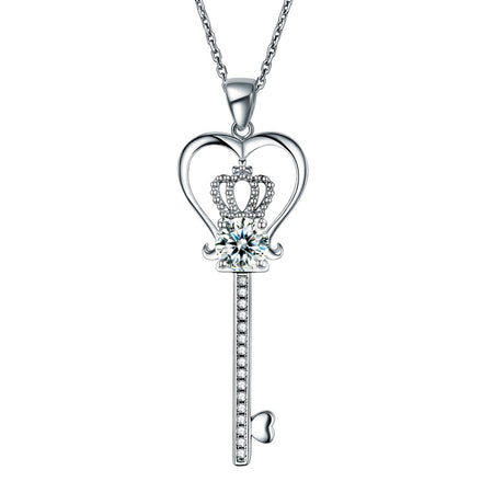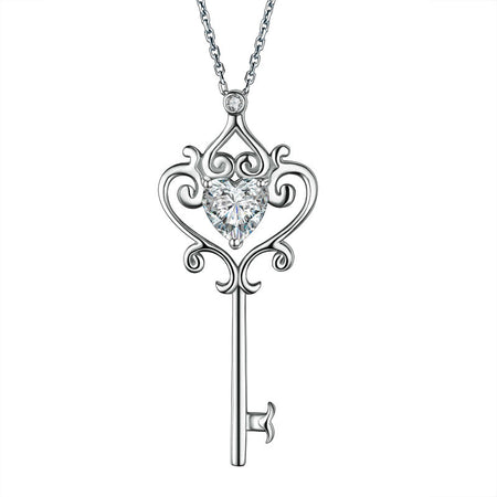 Love Heart Lock Key 925 Sterling Silver Pendant Necklace 1.5 Carat Simulated Diamond XFN8083