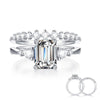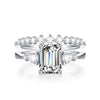 2 Carat Emerald Cut Moissanite Diamond Ring Set ( 2 pcs) 925 Sterling Silver MFR8368