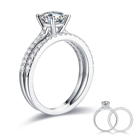 Princess Cut 1 Carat Moissanite Diamond Ring Set (1 pcs / 2 pcs) 925 Sterling Silver MFR8365