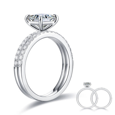 Cushion Cut 1 Carat Moissanite Diamond Ring Set (1 pcs / 2 pcs) 925 Sterling Silver MFR8364