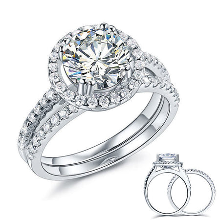 Quick Shop 925 Sterling Silver Wedding Halo Ring Set 2 Carat Simulated Diamond XFR8218 from $31.00 USD Quick Shop