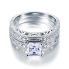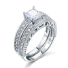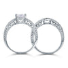 Vintage Style Victorian Art Deco 1 Carat Simulated Diamond Solid Sterling 925 Silver 2-Pc Wedding Engagement Ring Set XFR8104