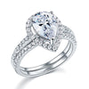Solid Sterling 925 Silver Bridal Wedding Promise Engagement Ring Set 2 Ct Pear Jewelry XFR8224